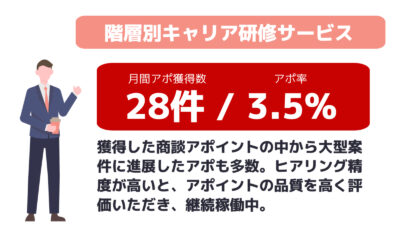 在籍アポインター全員が、業界歴5年以上、トップの成績を残してきたトップアポインターのみを厳選採用し、貴社の商談アポ獲得を支援いたします。