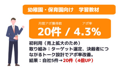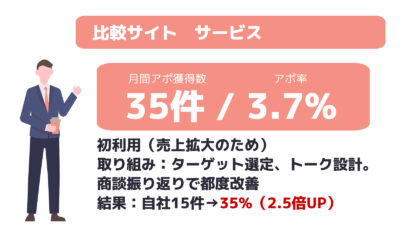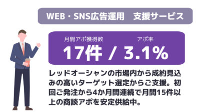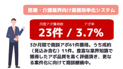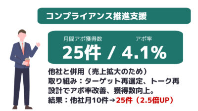※平均アポ率:案件全体平均のアポ率になります。商材・取得条件によって異なりますので目安とお考えください。