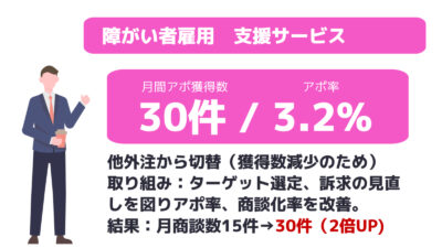 ※稼働開始後の取得条件変更、アポ単価変更、依頼件数の変更も対応可能です。お気軽にご相談ください。
