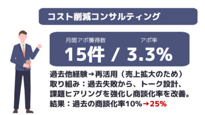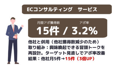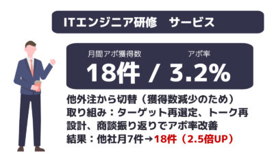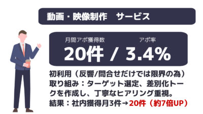 ※成約率:案件全体平均の成約率になります。商材によって異なりますので目安とお考えください。